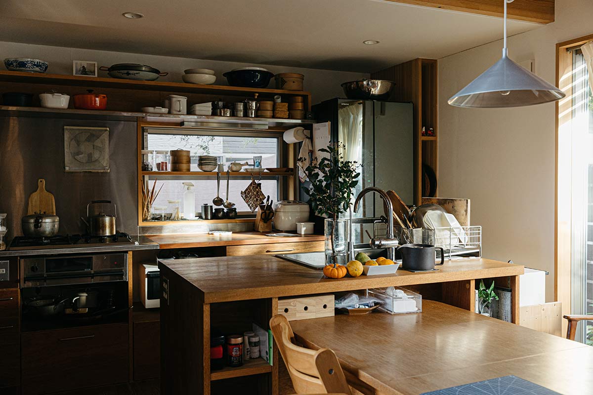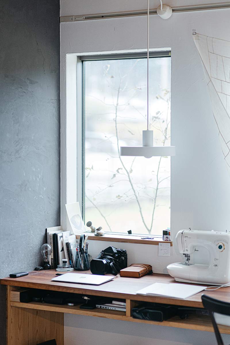 私ね、このリビング兼作業スペースで仕事をするのが好きなんですよ。ここで、外の景色を見ながら、子どもの動きを背中に感じながらね。そういう時は、子どもには背中を向けているくらいの方が、干渉し過ぎずいいような気がするんです。