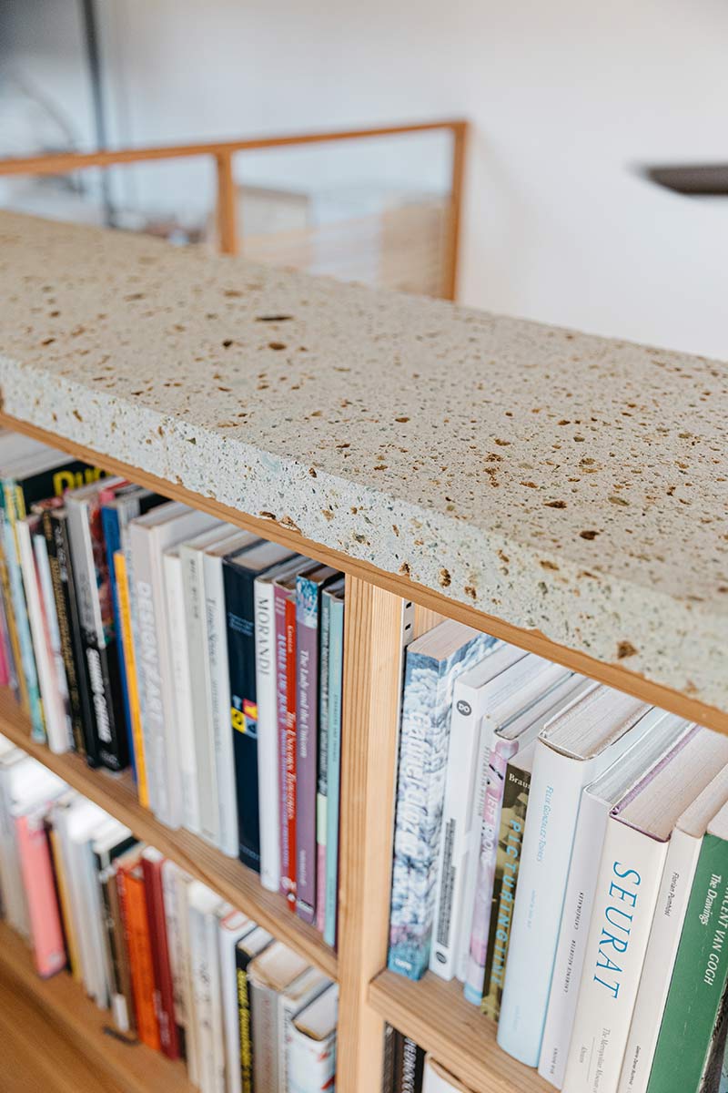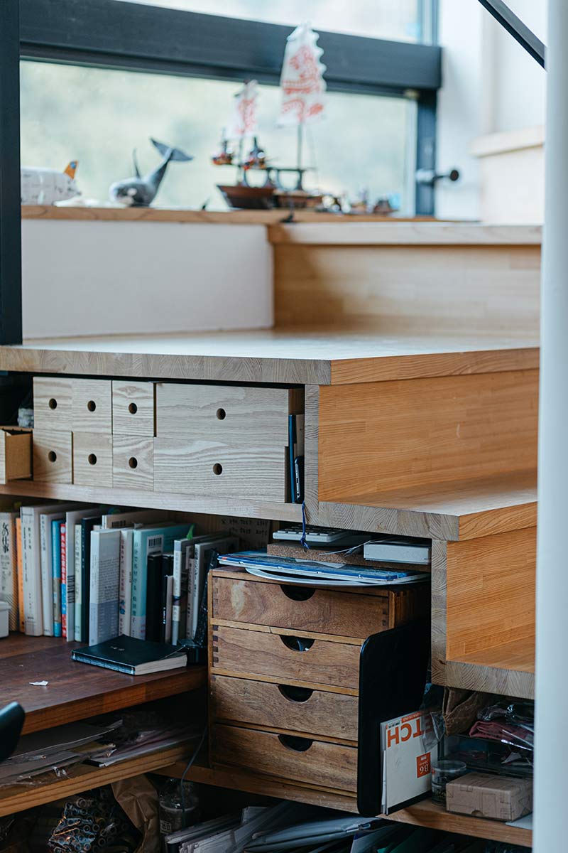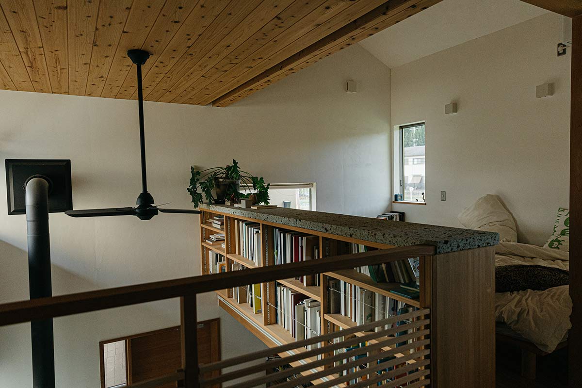 後ね、僕がこの家の中で好きなのは、2階の本棚なんですよ。そこに寝室側から入ってくる光がめちゃくちゃに綺麗なので、そこで本をちょっと開くんですが、ここが実は子どもへのアピールの場でもあるんです。