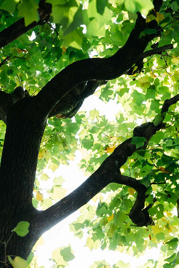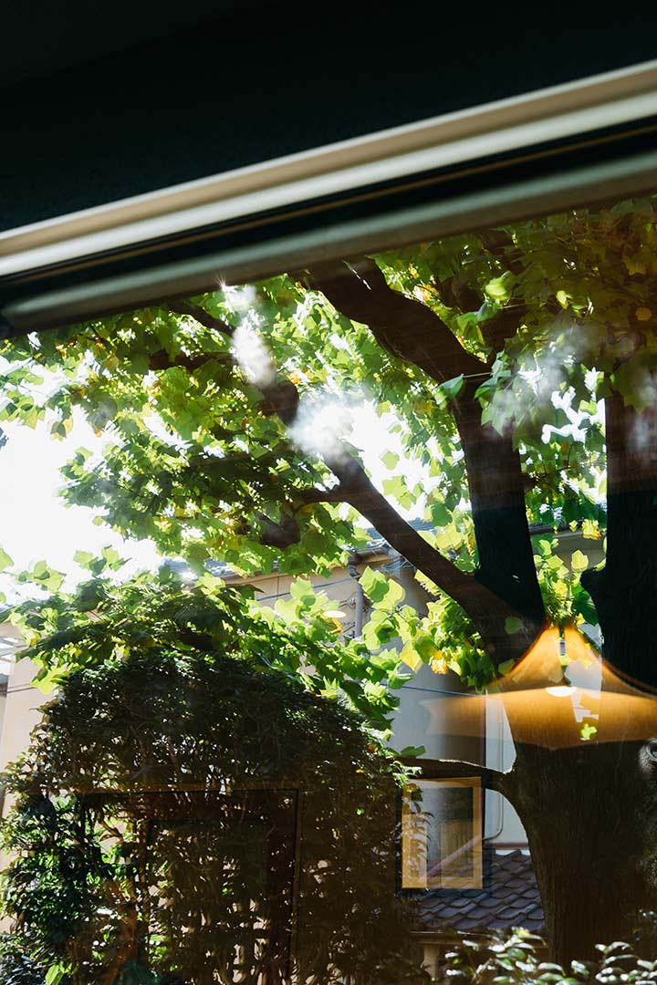 秋の紅葉もすごくきれいだし、あと冬の朝は、そのチューリップツリーの影がお隣のお家の大きな壁に映って、これがまた特別きれいなんですよ。